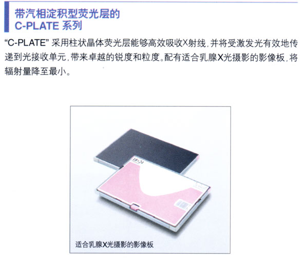 C-PLATE系列影像板采用柱狀晶體熒光物質(zhì)設(shè)計(jì)而成,是乳腺X光攝影和兒科的理想選擇。