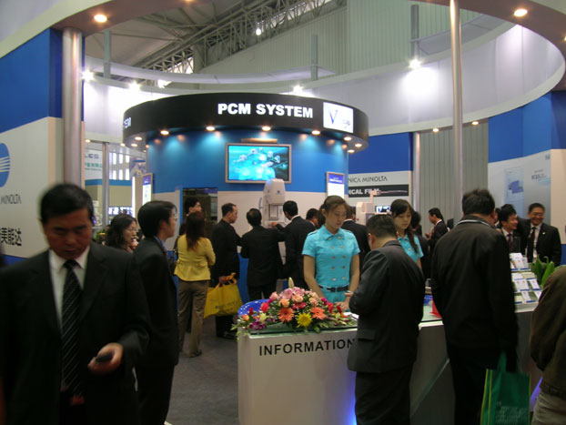 此次參展,柯尼卡美能達秉承其慣常的技術(shù)創(chuàng)新理念,隆重推出了采用最新技術(shù)的 X 線乳腺數(shù)字診斷系統(tǒng)“ PCM 系統(tǒng)”以及作為高清晰、高品質(zhì)“ Vstage ”系列產(chǎn)品的“ CR/Regius 系列”和“干式激光打印機 /Drypro 系列”等全線產(chǎn)品,使在既能提高診斷水平有能提供高效醫(yī)療環(huán)境間尋求了臻于完美的結(jié)合。在影像醫(yī)學(xué)放射區(qū)主展廳內(nèi),柯尼卡美能達展臺采用開放性的圓柱型設(shè)計,并以它主題鮮明的蘭白色調(diào),配以生動形象的現(xiàn)場展示以及產(chǎn)品擔當詳盡細致地解說,使絡(luò)繹不絕的參觀者親身體驗了柯尼卡美能達公司出品的最新醫(yī)療數(shù)字影像系統(tǒng)。